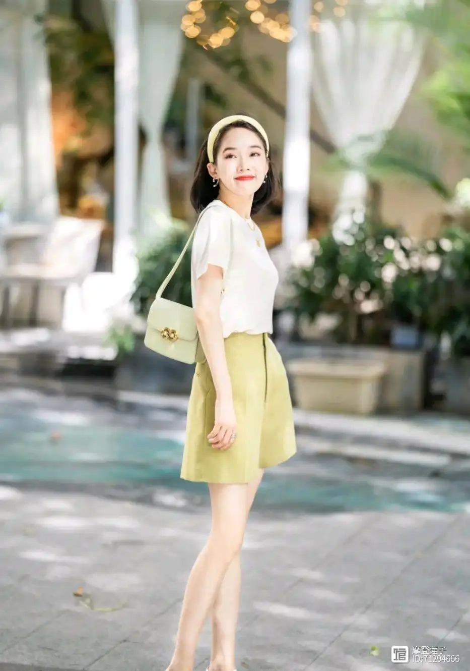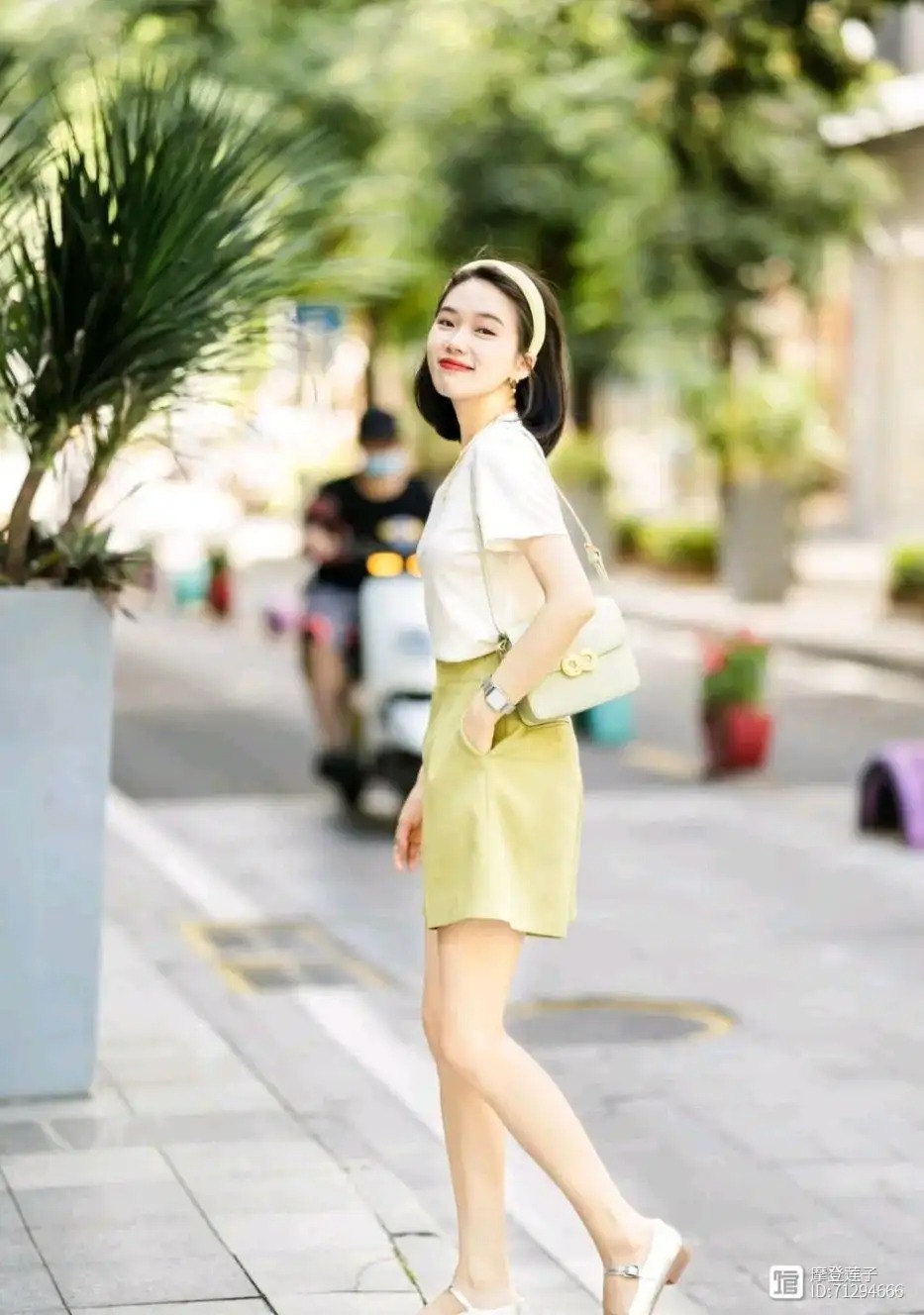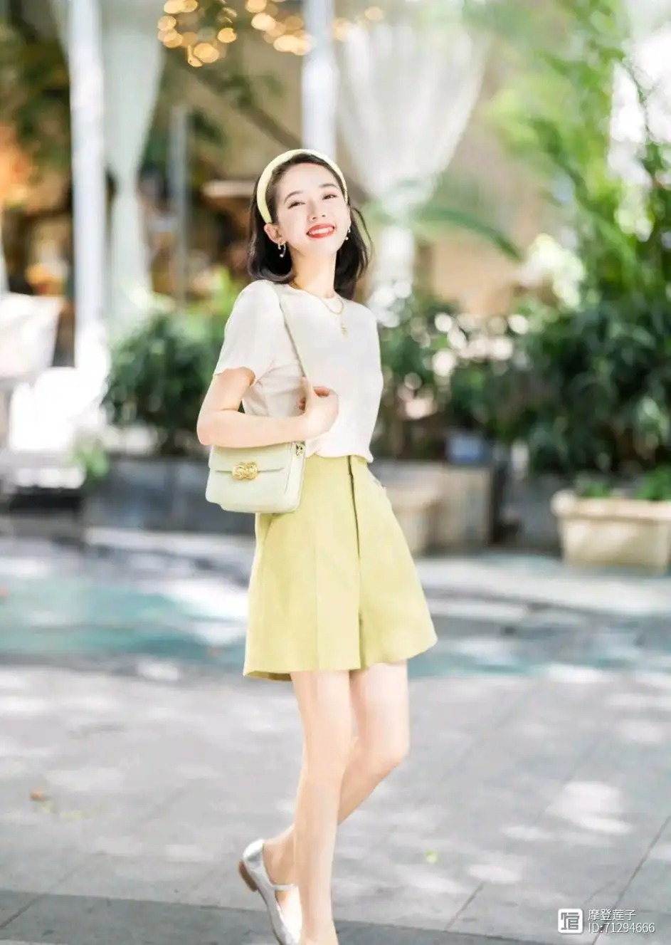 不知道怎么搭配的女生可以借鉴一下这位时尚博主的穿搭风格,她选择了简简单单的白色T恤搭配浅黄色半截裤,穿出了清清爽爽的感觉,很轻松就能起到减龄的作用。
