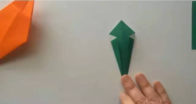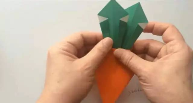 这样胡萝卜的叶子就折好了,同样的方法我们再折一片叶子