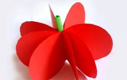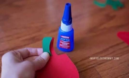 2.根据模板在卡片纸画好图形,在绿卡片纸剪下绿茎,用强力胶把它黏在红卡片纸。