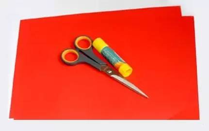 准备材料:一把剪刀,一支胶水和6张红色卡纸