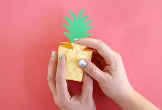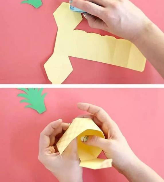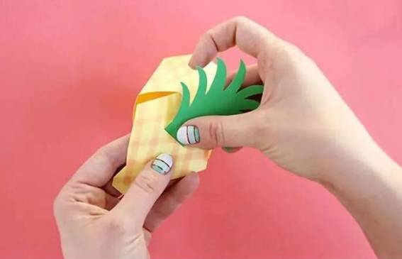4.在盒子顶部中间割一条缝隙,在把叶子装进去一部分,用粘合剂固定。