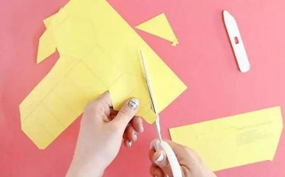 2.在卡纸另一面画好展开的盒子,再沿着画线剪下来。