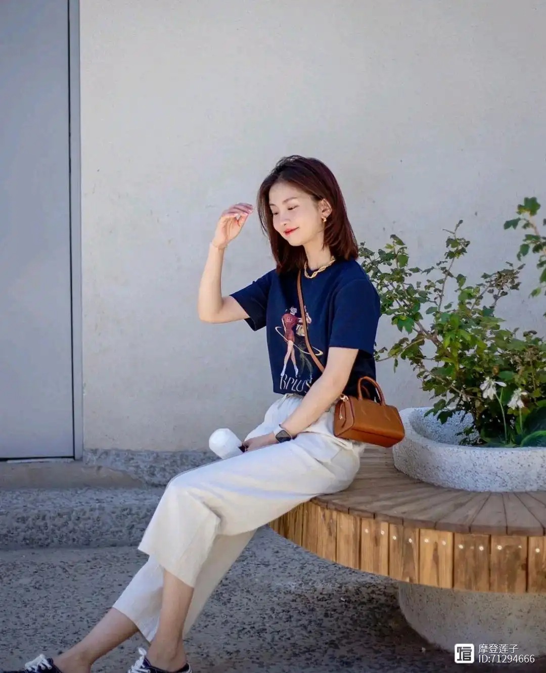 T恤虽然简简单单,但不得不说是很好搭配的时尚单品,只要选对了合适的裤子或者是合适的裙装,一般都不会出错,很轻松就能穿出精致的美感,甚至能穿出减龄的效果。