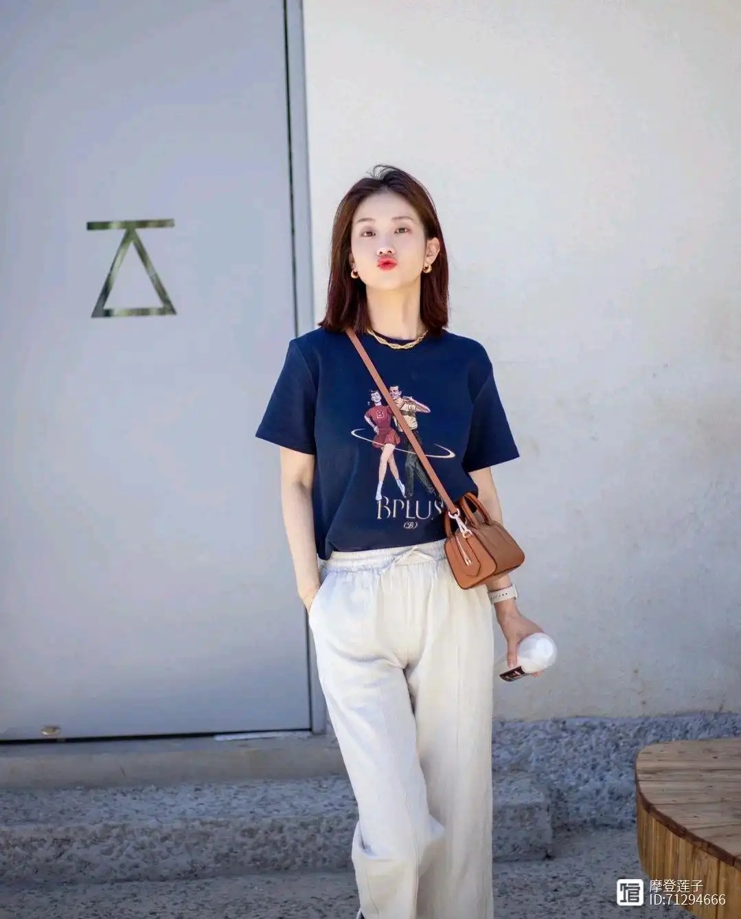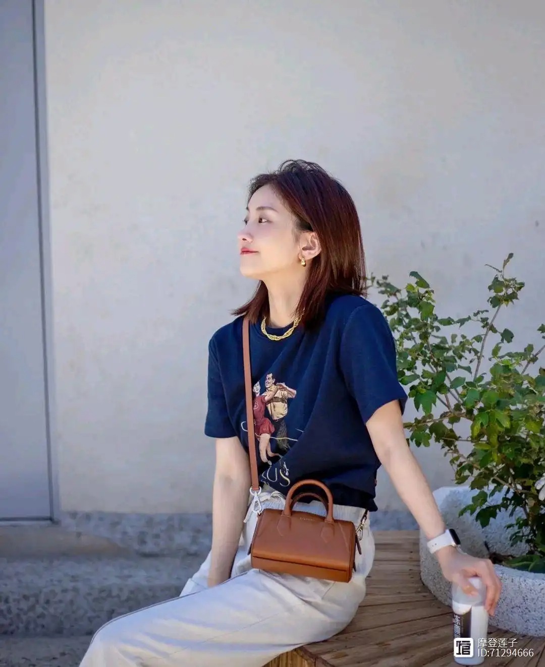 但如果觉得T恤搭配牛仔裤太过单调的话,那就可以选择合适的挎包或者是手肩包来点缀,可以让整体穿搭造型更有时尚感。
