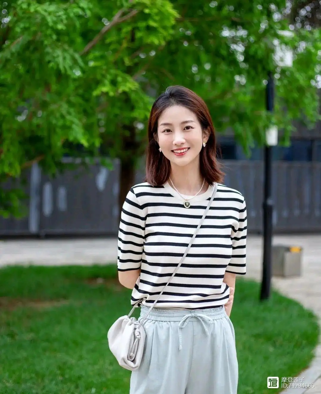 条纹是很经典的花纹,虽然简简单单,但穿上合适的条纹服装,却给人一种很别致的感觉,既能避免单调感,又能穿出精致的美感。