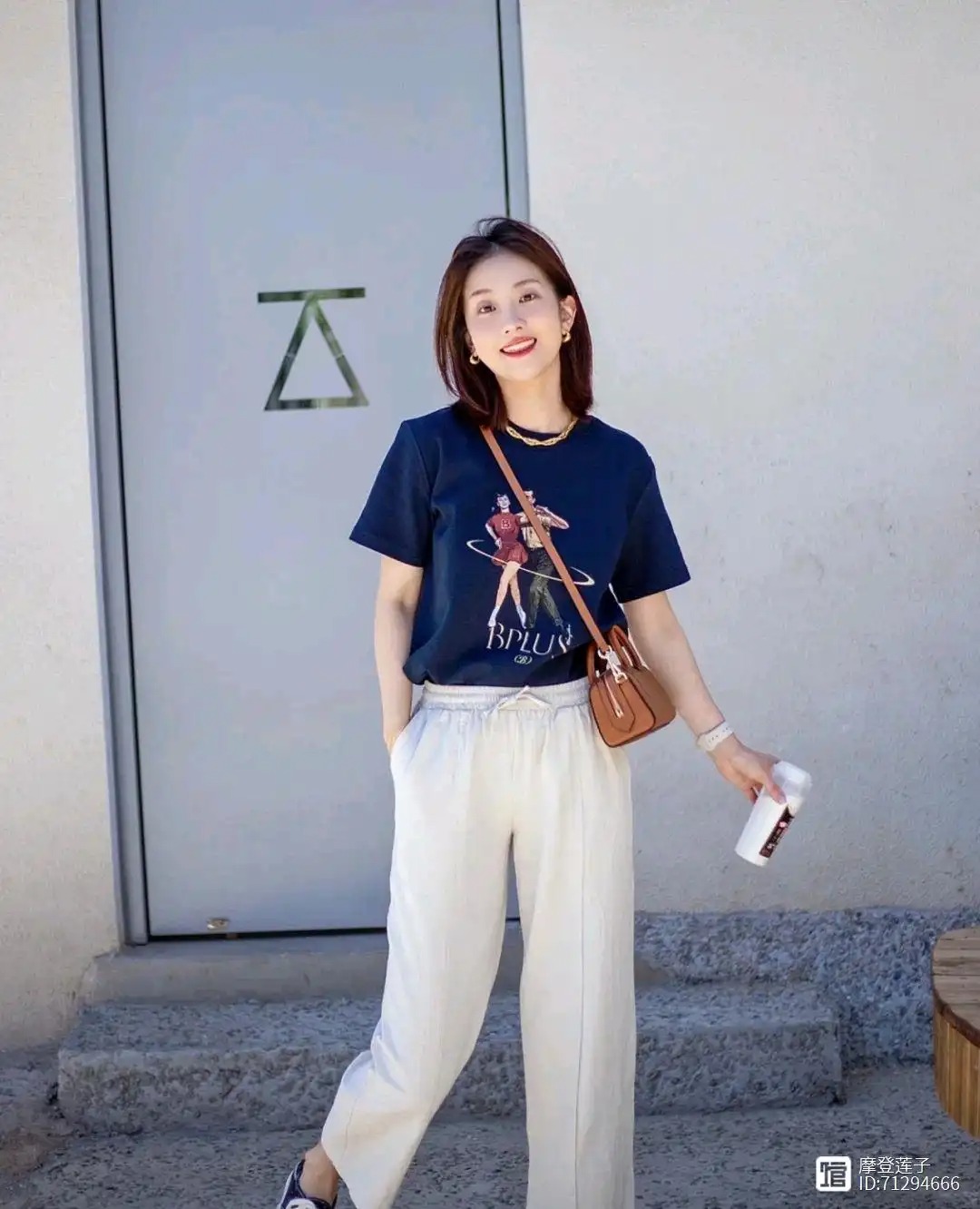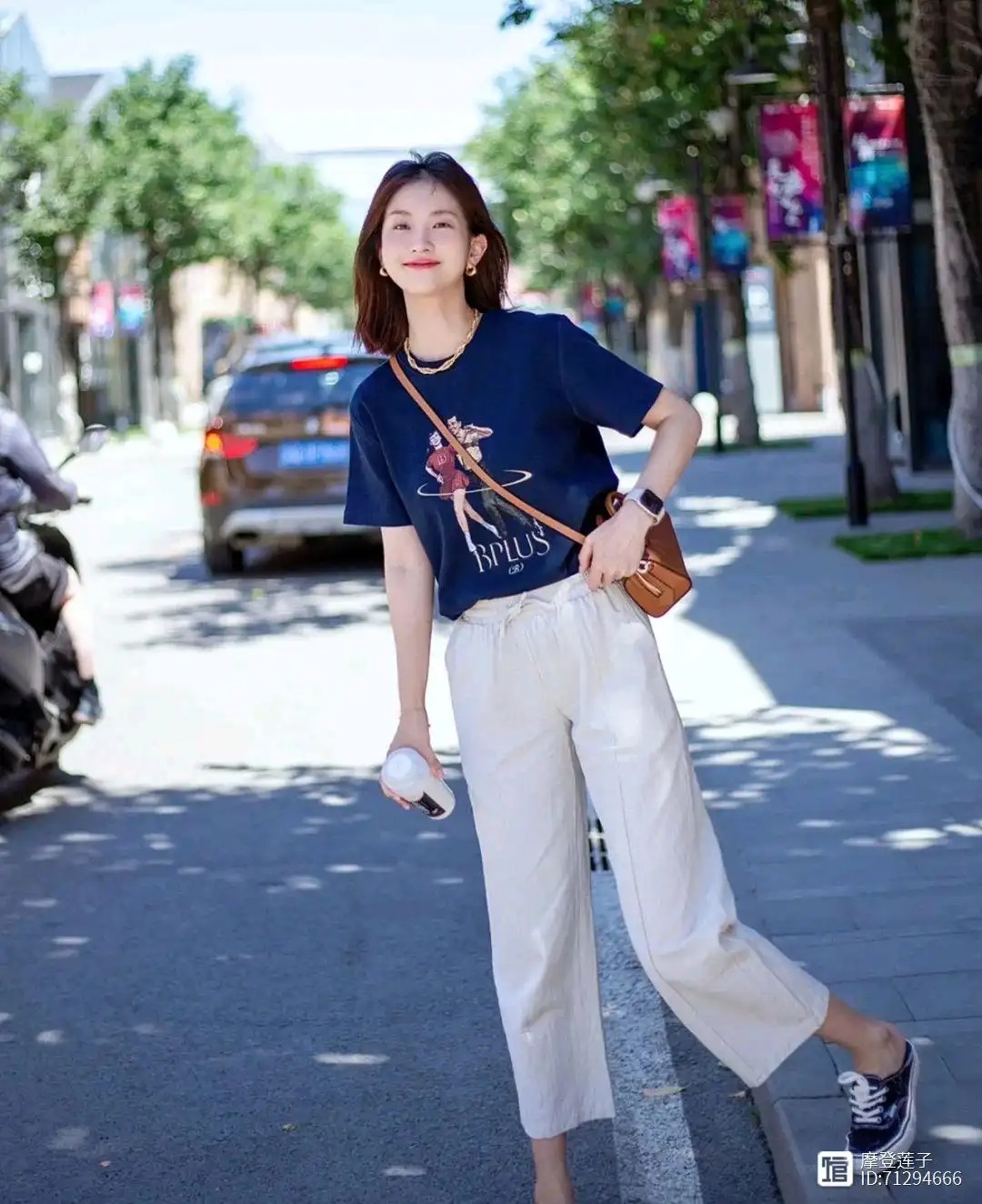 T恤搭配休闲裤确实是不会出错的搭配方式,尤其是在炎热的夏天,穿上简简单单的T恤搭配休闲裤,既能展现出青春靓丽的一面,又不会出错。