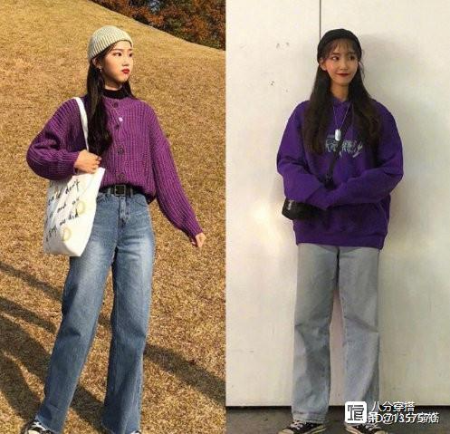 神秘玄幻的紫色也深受小仙女们的喜爱,浅色系更加温柔甜美,深色系的相对成熟神秘一些,一件柔软舒适的针织衫,或者是一件中性休闲的卫衣都是非常舒适自然,不管是搭配紧身裤还是阔腿裤,烟管裤都不出错,简单利落,低调朴素。