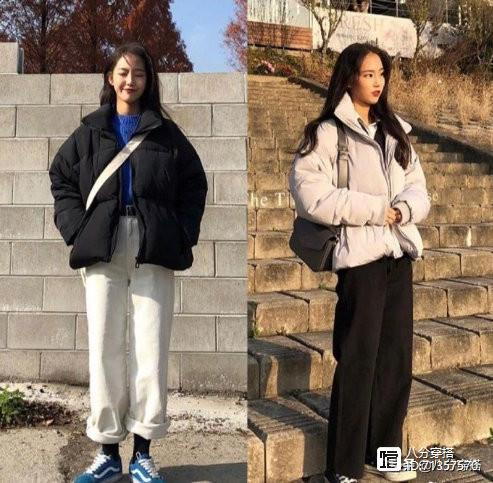 除了最基础的黑白灰三种颜色,我们也可以带上一两件比较高调的衣服,增加自己的时尚感和气质感,红色喜庆应景,宝蓝色稳重大气,都是不错的选择,宝蓝色针织衫当内搭,穿黑色羽绒服和白色的烟管裤,简单感觉,配色也利落明了,说不上惊艳,但是很有魅力。