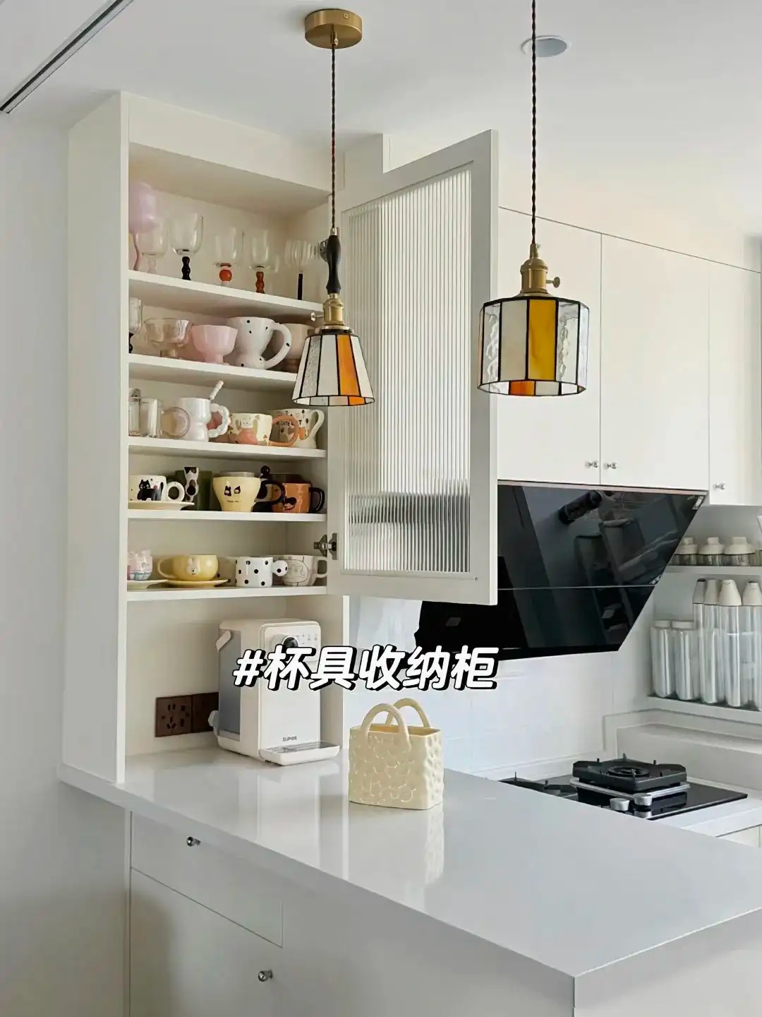 当然了,如果我们喜欢把杯子当做“艺术品”展示出来的话,我们可以把柜子设计成玻璃的。这样不仅能展示杯子的颜值,还能顺带提升一下家居格调。