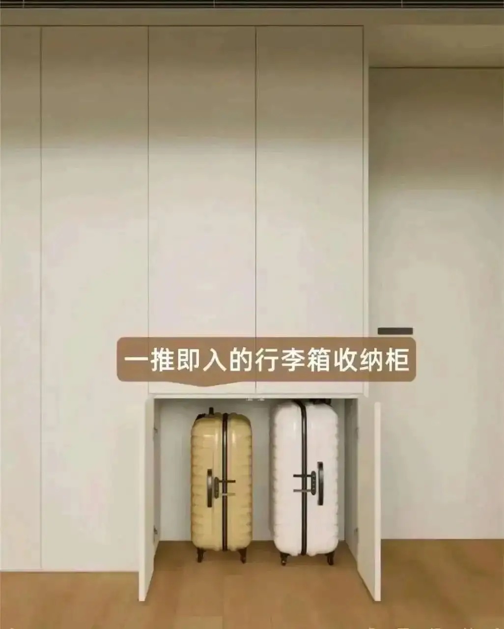 总之,家里哪里有空间就要“榨取”到底,把行李箱收纳进柜子里,既不丑,还能提升空间利用率!