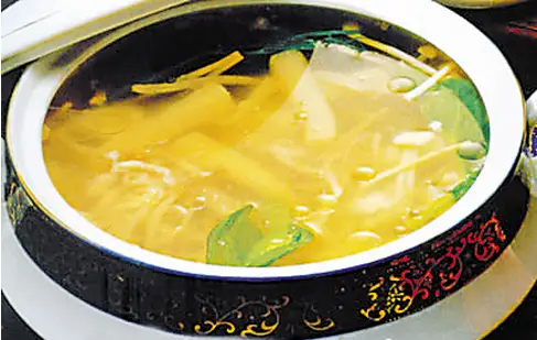 芦笋100克、金针菇50克、精盐5克、胡椒粉0.5克、味精0.5克、葱花10克、清汤1000克。