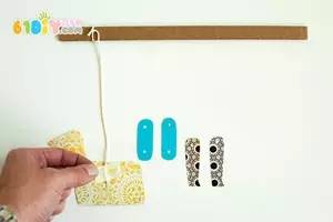 手工材料:卡纸、剪刀、绳子、双脚钉、打孔器、纸板或一次性筷子