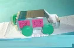 6.把矿泉水瓶盖装到盒体下作轮子,车子的雏形就出来了。
