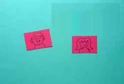4.彩色卡纸剪成小块状,在上面画上人物的头像。