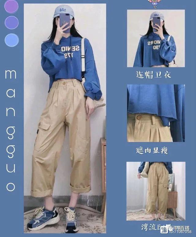就说这组look,配色鲜亮的卫衣+黑裤子的搭配,为了避免造型高调浮夸,利用鞋包、帽子等单品与裤装同色,减少高饱和色在造型中的面积,就能穿出时尚不俗的造型。