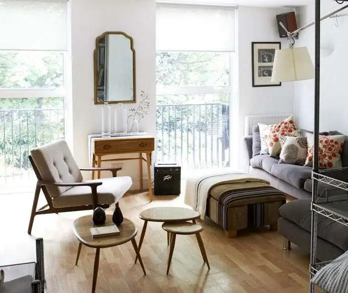 还得要避免沉重的、有分量的家具,因为它们会占用房间里太多的可用空间。例如,一个光滑的沙发或椅子比起一个臃肿的沙发和椅子,给你提供的功能一样,但占用的空间会少得多。