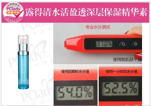 评测编辑点评:露得清水活盈透深层保湿精华素的质地为半透明的乳液状,能瞬间从肌肤的纹理中渗透进去。在抗氧化的评测中,精华露跟溶液反应较快,变色程度高,抗氧化性很好。在保湿度的评测中,其能令肌肤水分值上升17.0%,且1小时后肌肤仍然保持高水分状态,其保湿的持久性更令人刮目相看。同时,这款精华素能有效唤醒肌肤,使用后肌肤含水量和细嫩度改善显著。