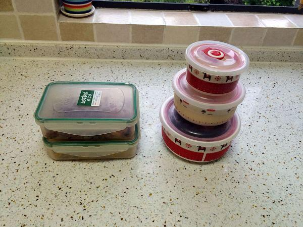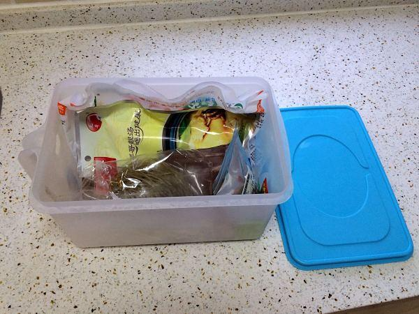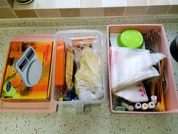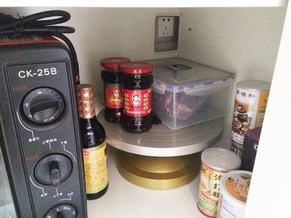 所有做蛋糕的工具还有备用的调料等等,都装盒子里。平时要用的白糖、豆粉、杂粮都放在顺手的地方(上图烤箱旁边),不用的工具,备用调料放不顺手的地方(上图烤箱上面)。总之一定要根据使用频率来安排位置,不然我觉得很少有人能维持这个整洁度。还有平时准备一些保鲜盒,保鲜碗什么的,拿来装榨菜,萝卜干,猪油,炸酱……(我好像一说吃的都停不下来),这样你的冰箱也会整齐很多。