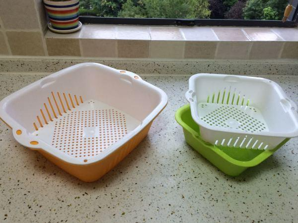三层滤水篮洗菜装菜一把好手,滤水也超方便,像绿色篮子那样直接提起来就能滤水,三个颜色(蓝色那个我装着土豆呢,就不露脸了)能够像套娃那样重合到一起的,平时收纳一点都不占空间。