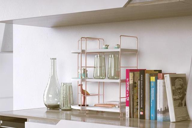 桌子上的空间有限,如果想充分利用,就要借助带高度的收纳架子了。多层搁板设计方便分类整理物品,胶水架子便签纸,都有它的安身之处,不同于笨重的抽屉柜,这样简易的桌面收纳架轻巧又方便,不仅可以做收纳使用,摆上摆件也可以用作展示架。