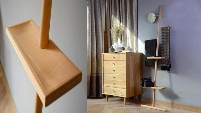 这样有爱的一个门厅杂物架,完全由你亲自组装而成,有托盘和木杆的设计,可以挂外套、围巾,托盘的设计能存放钥匙、手机,顶部还有小镜子的设计,临走时别忘记给自己一个甜甜的微笑。