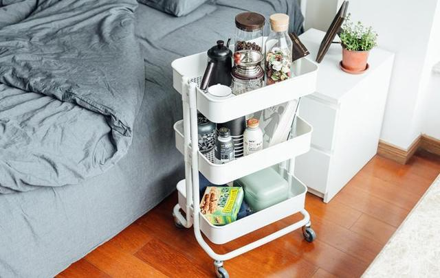 用在客厅做沙发边几,上层做迷你茶几,下层用来收纳,重点是!还可以移动!小推车的出身其实是来自于宜家,主打Less is more 的设计理念,简单中突出细节的用心。