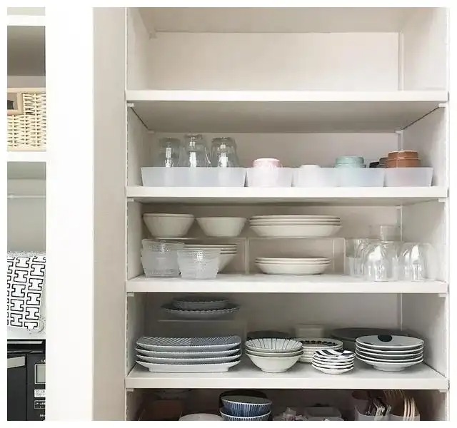 那些不属于厨房的用品可以最后和其他地方清理出来的物品一起来归纳,在储物柜或进门门厅或吊柜,给他们找到固定储放位置。