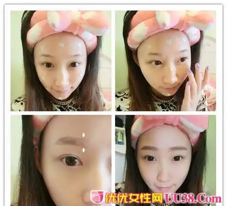 Step1:首先涂抹上BB霜,选用与自己肌肤差不多颜色的比较好,再将眉毛稍微扩张一下,打上眉粉。#p#副标题#e#