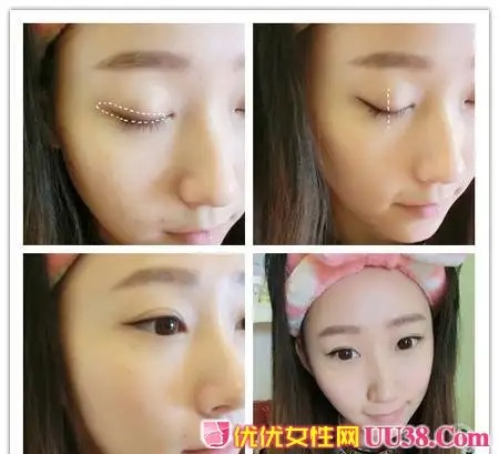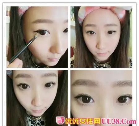 Step3:用米白色的眼影涂抹在下眼脸的部位,接着刷上加强细长的睫毛膏就可以了。#p#副标题#e#