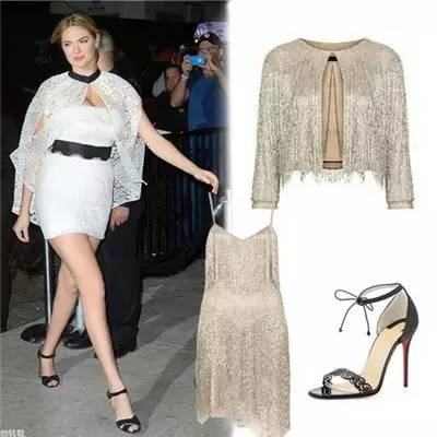 选择颜色明亮或上半身细节较多的单品,造成视觉上膨胀的效果。例如Alexa身穿的这条Chanel连衣裙,明亮的白色和肩部别致的细节完美掩盖了她纤弱的身躯,衬托出她独特的气质和姣好的容貌。