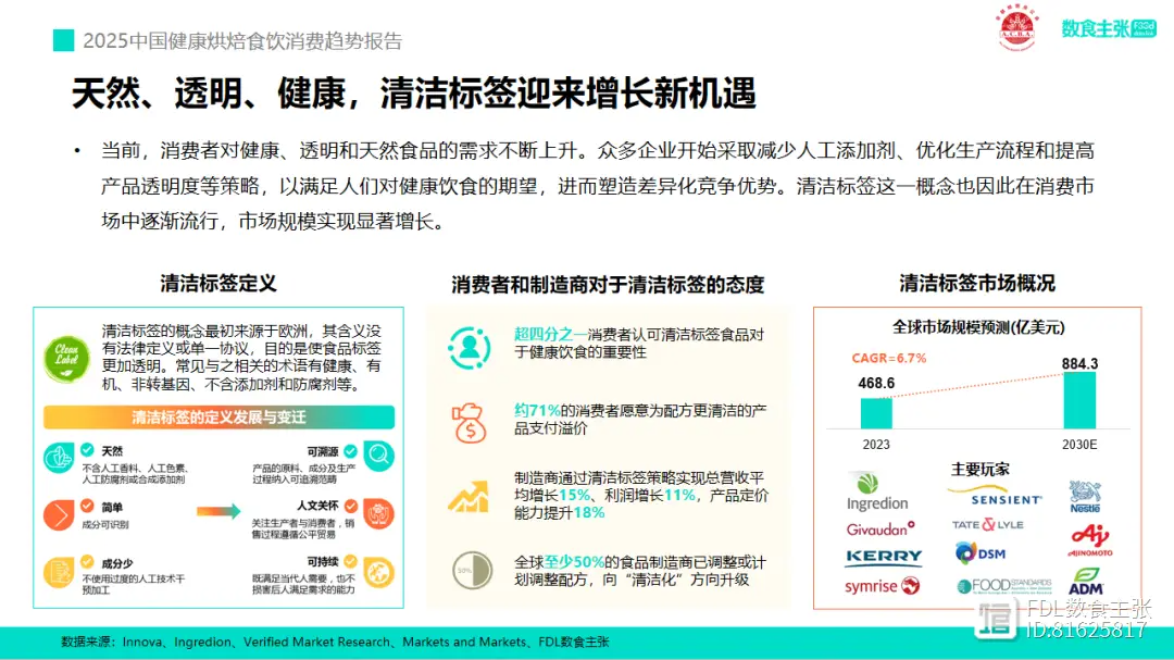 实际上,清洁标签在烘焙产品中的应用已经深入到配方设计、加工过程和质量控制等多个环节,包括减少或消除添加剂的使用、采用长时间发酵技术、以及部署高效的空气过滤系统等。目前,越来越多的烘焙企业正通过这些措施来实现产品的天然化和健康化,以满足消费者对健康烘焙产品日益增长的需求。