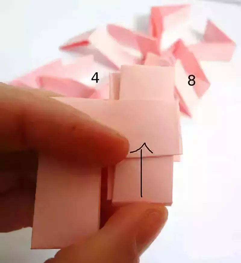 把剩下的两个三角形折到这两个三角形的边上,压出折痕。