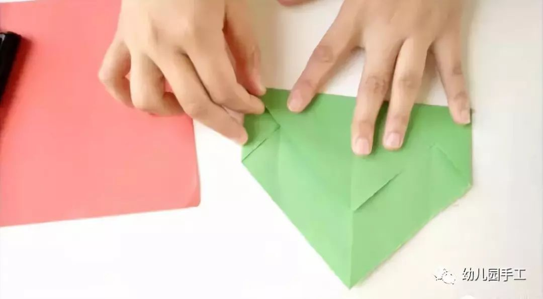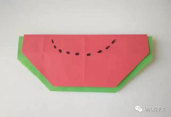 同前面的绿色卡纸的折法一样,折成一块西瓜的形状。