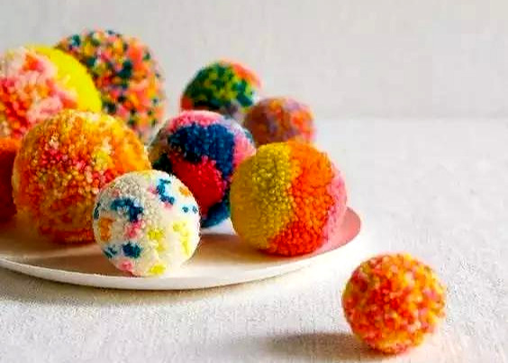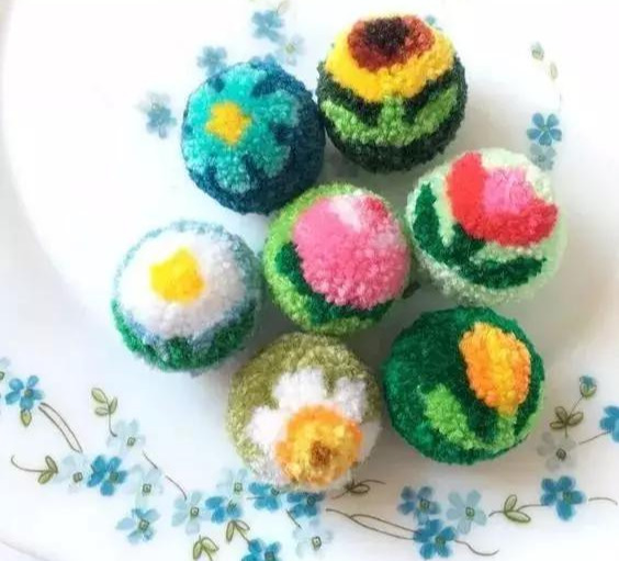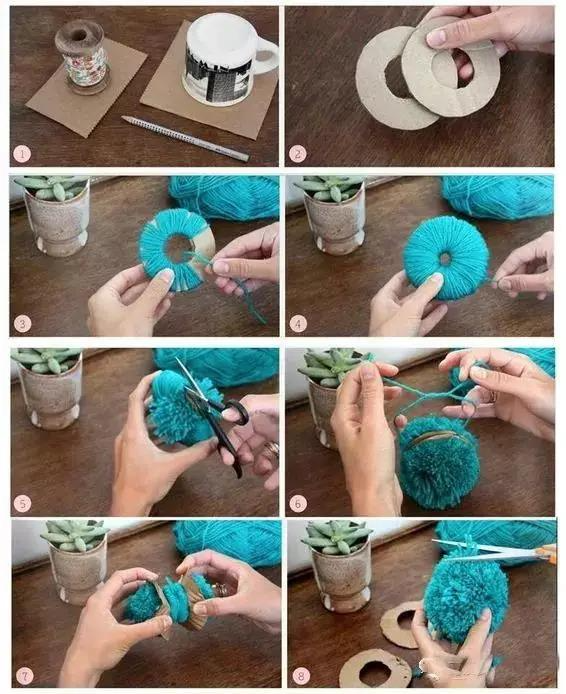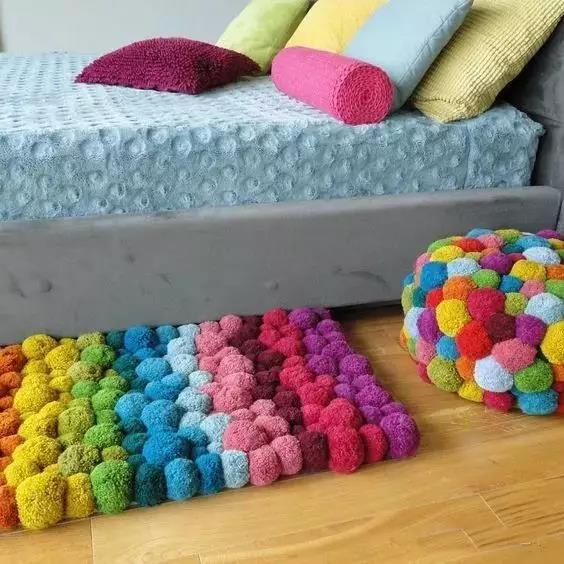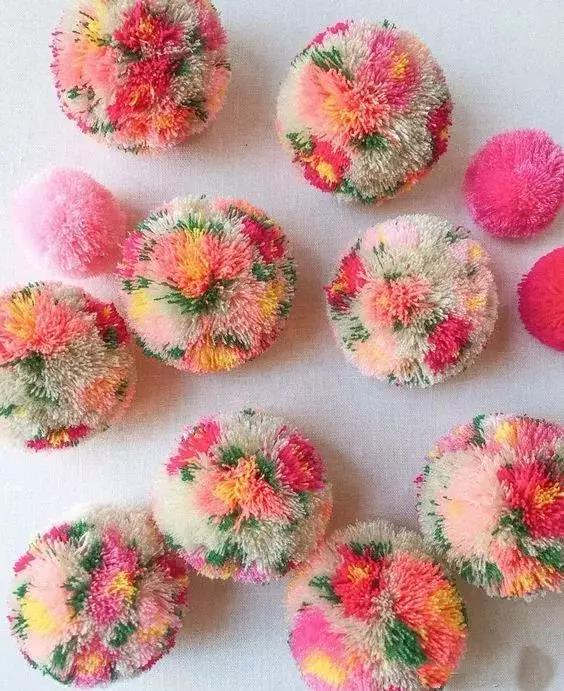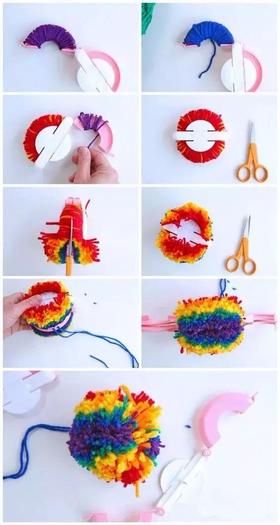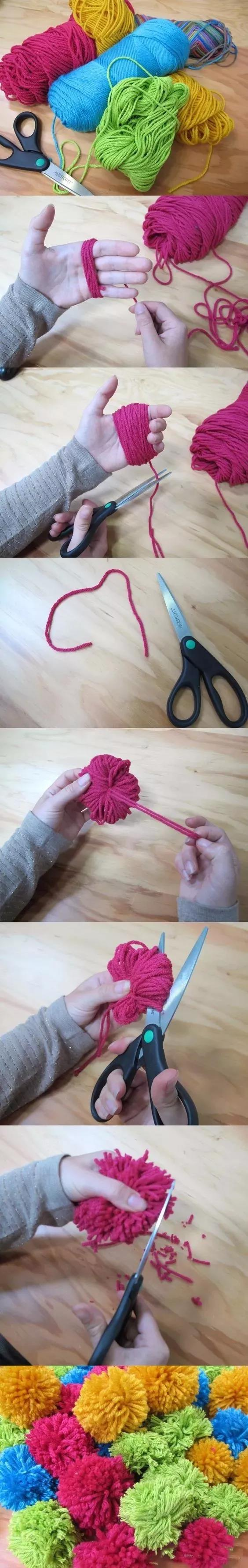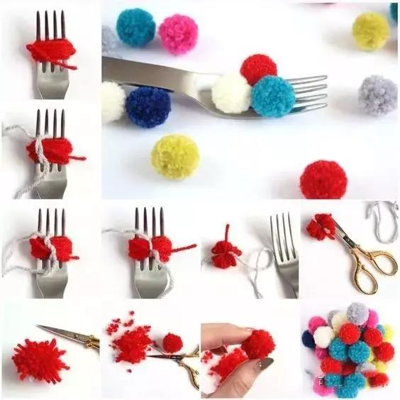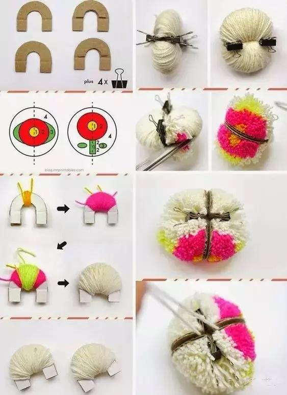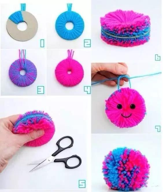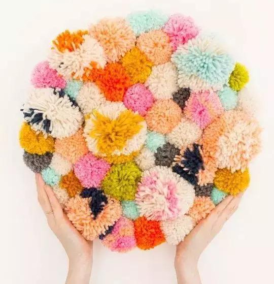 毛球可是冬天最合适玩的手工哦!制作方法简单,成品可爱、温暖,可以单个做成挂饰,也可以组合成垫子等。