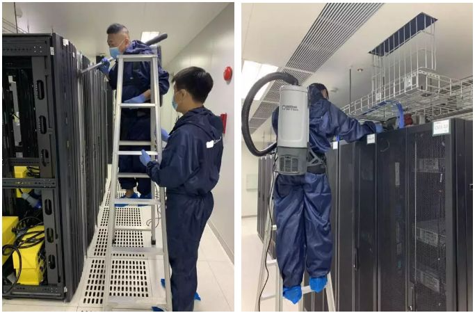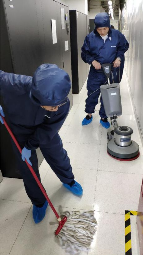 其中包括带有HEPA过滤系统的专用真空吸尘器、数据中心清洁专用工作服装、专用清洁剂(实验级异丙醇溶液、独家配方防静电地板清洗剂)、高纤维无纺布(防静电,不掉毛)、高纤维无纺布拖把、地板吸、宽视野头灯等物品。