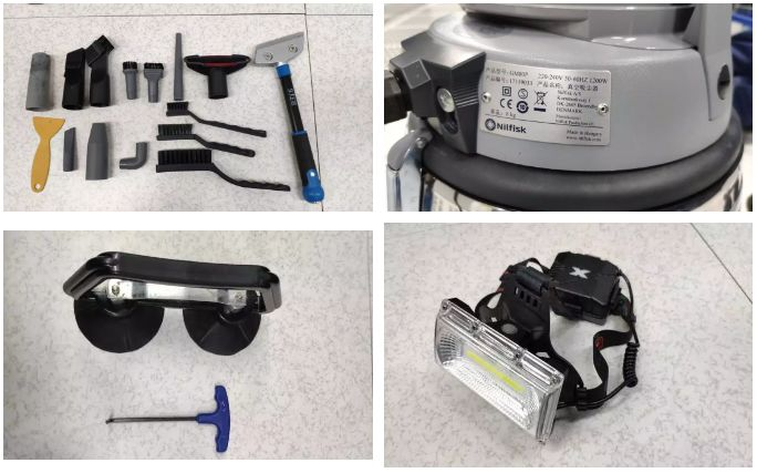 此项工作由两人一组,熟练配合。地板掀开后,一人负责擦拭表面、侧面、背面灰尘,另一人使用GD930 配以 GM80 真空吸尘器进行地板下垃圾清理。如遇吸尘器无法吸入的垃圾,用人工捡拾的方式进行取出,再用无纺布配以清洁剂对地板下的保护金属板表面吸附灰尘进行擦拭,确保地板下环境的清洁。