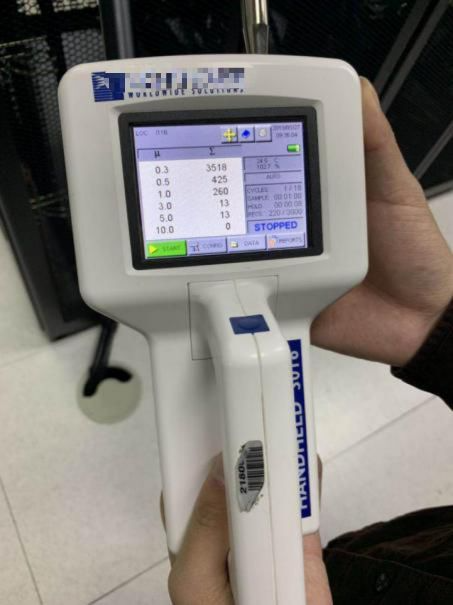 这次我中心实施的马坡(民生)数据中心机房整体清洁工程,由专业的保洁公司承接,内容涵括高架活动地板下部、地板表面,支架,机柜表面以及其他设备的清洁。清洁后的检测工作使用专业手持粒子计数器进行测量,自动生成测量数据,并出具专业的空气质量检测报告。