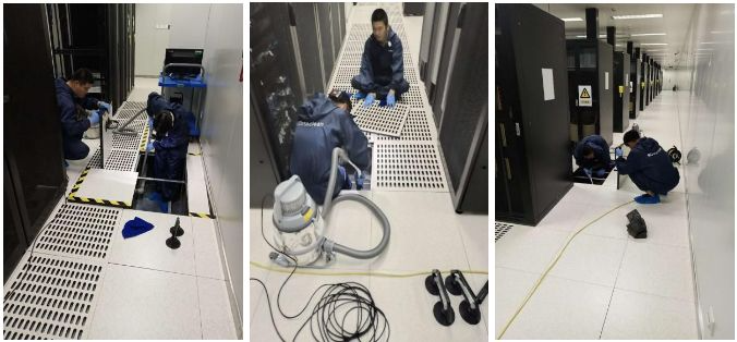 对运行中数据中心的整体清洁不但规模庞大、现场情况复杂,对于清洁度也有极高要求,在清洁过程中不但要保证清洁质量,更要确保机房内设备的正常运行。假如清洁动作不慎,会破坏线路;扬起灰尘吸入IT设备,会影响设备寿命;地板掀开超过3块,就会影响空调制冷回路,产生局部热点,造成设备宕机等等问题,因此就需要有非常专业的团队使用专用工具来进行这项并不简单的清洁工作。