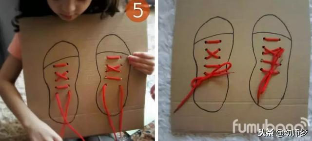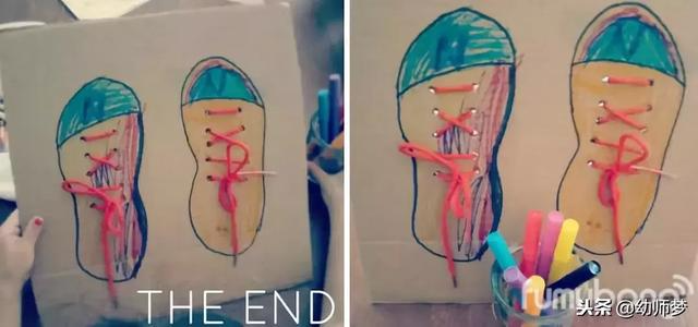 这个玩具道具可以锻炼孩子们穿鞋鞋带哦!对于幼儿园小朋友来说是非常有意义的一款手工玩具,可以说是幼儿园必备玩教具教程,收藏起来教孩子吧!