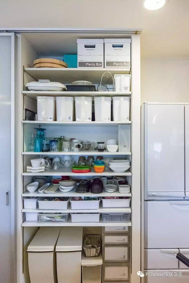 拥有了这个超大的收纳柜,不论是一家三口的餐具、调料还是食材,统统都放下了。