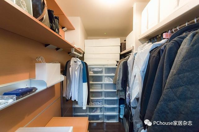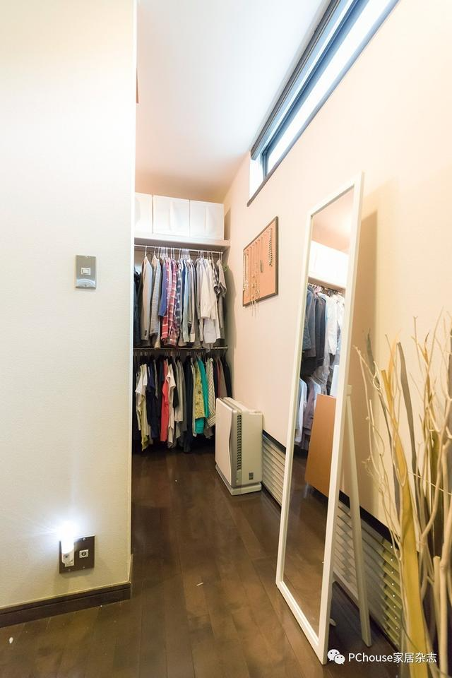 伊藤家的衣柜其实是在卧室用隔墙隔出了一个狭窄的区域,分为开放式和封闭式2个小区域。(上图为封闭区,下图为露出的开放式区域)。