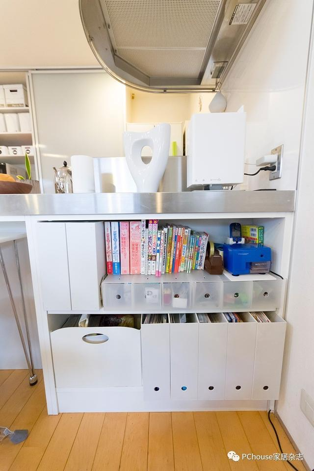 和其他日本收纳达人一样,柜子里的收纳也不简单,大大小小的收纳盒整齐排列,为了方便寻找,每个收纳盒都有自己的分类标签。
