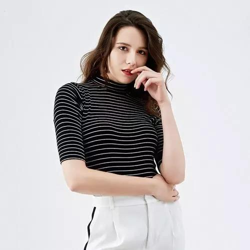 (4)如果你的上衣是条纹或者是花纹,最好搭配一个素色的下身装