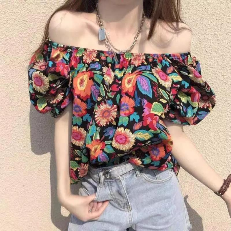 这样的服装有一字领,或者泡泡袖衣服,再或者是小碎花横条上衣,都具有这种功效。