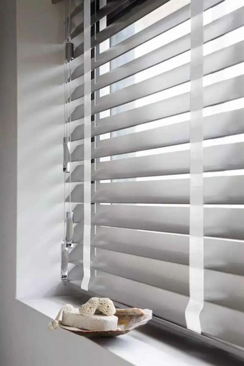 但这种两头上下拉动的百叶帘,下方有一定重量,就不会轻易被撩起。