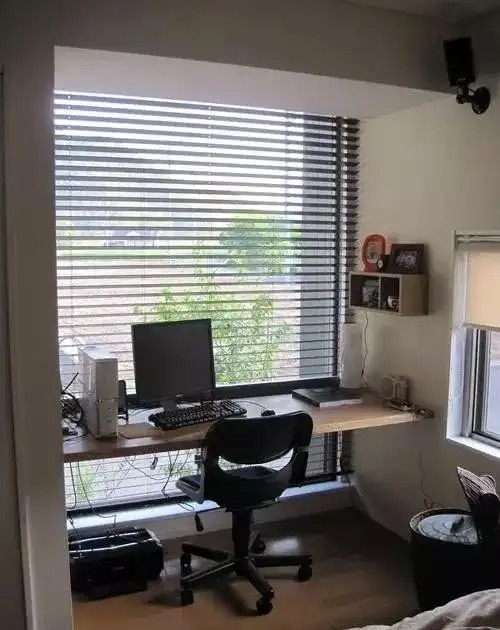 书房一般会选择“遮影”窗帘,但要是窗帘靠着书桌,偶尔抬头看看窗外浪漫美好,可整天被窗帘拂面,桌面凌乱,简直抓狂。