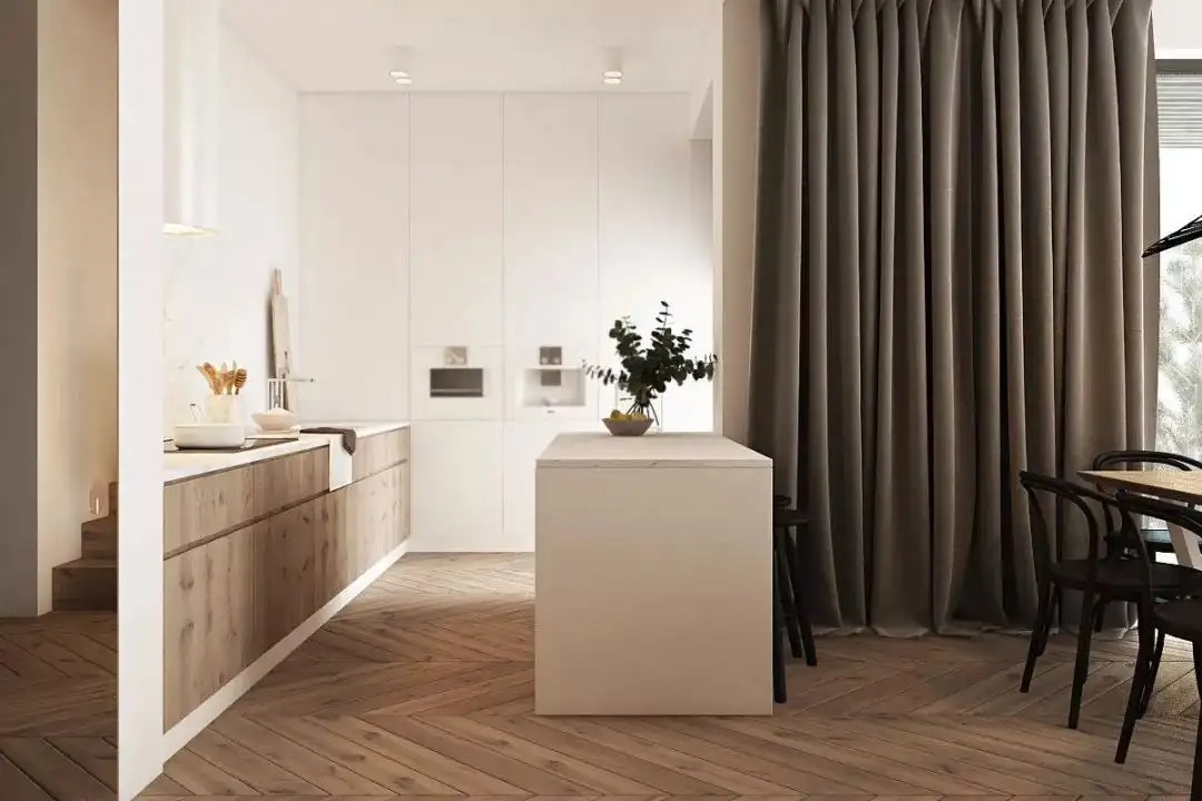 餐厅和厨房的效果还是重在遮影,收姐自家就用了百叶窗。