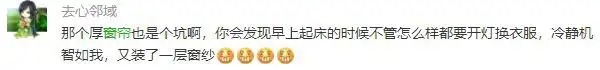 @去心领域:那个厚窗帘也是个坑啊,早上起床不管怎么样都要开灯换衣服,好在又装了一层窗纱。