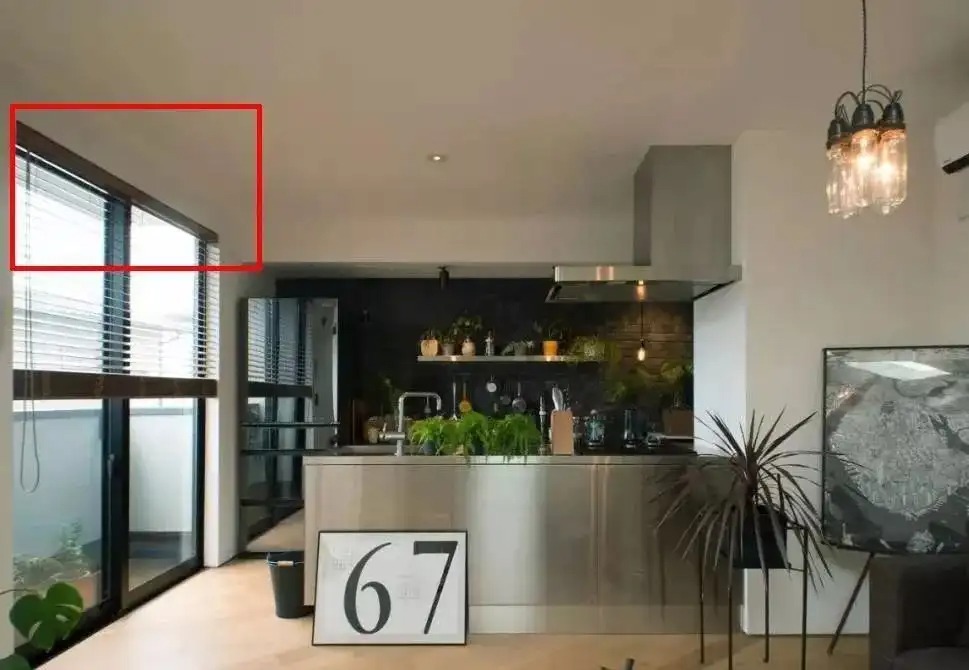 外挂式百叶,在窗户上方预留,25cm左右的安装位置,收起来不会影响窗户的采光。