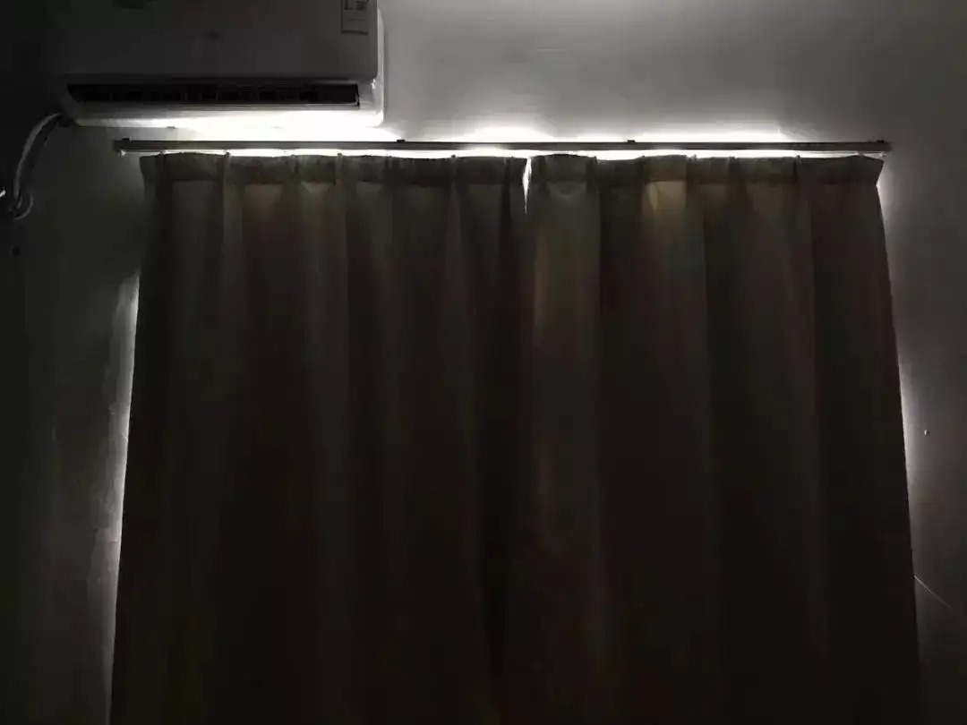 要是在窗帘盒里内嵌灯带照明,晚上作为辅助照明,特别有氛围,莫名一种朦朦胧胧的水帘洞之美.....